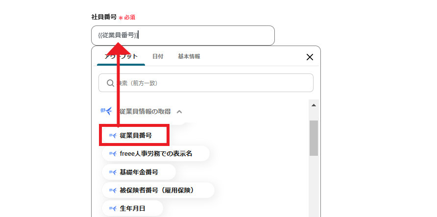 社員番号と氏名は必須項目なので、必ず入力してください。
