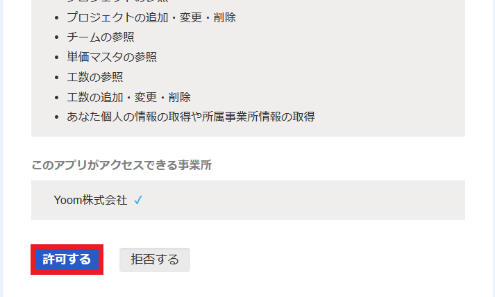 4.以下の画面が出てきますので、「許可する」をクリックしてください。
