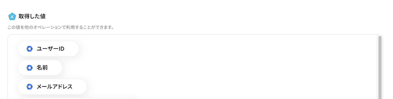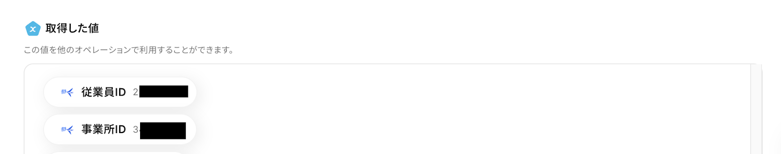 ①入力欄をクリックして「取得した値」を表示
