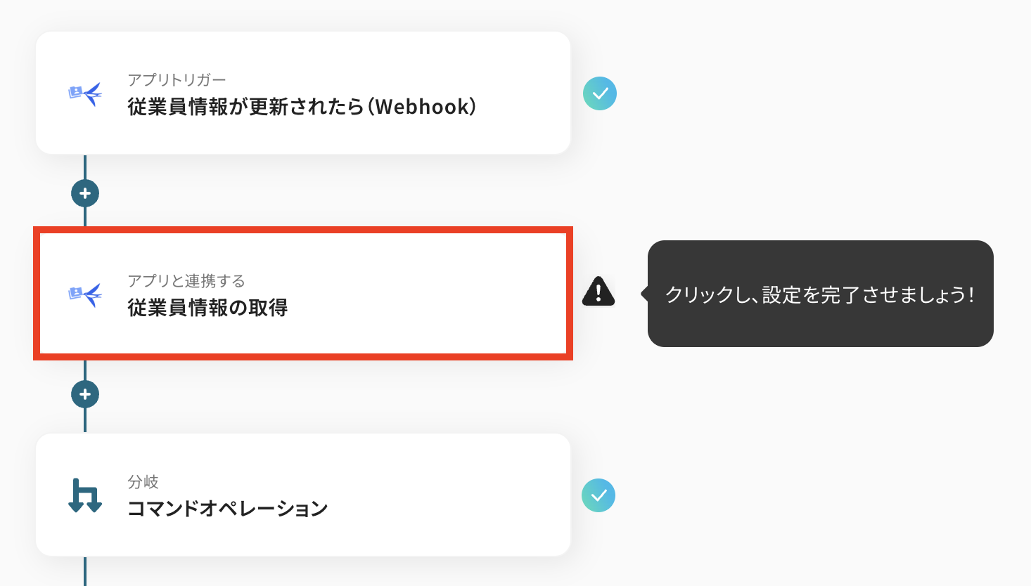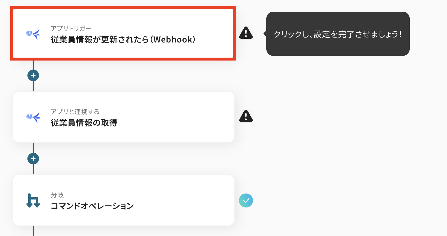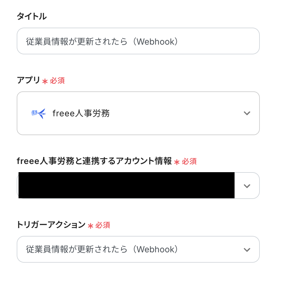 ②「従業員情報が更新されたら(Webhook)」をクリック
