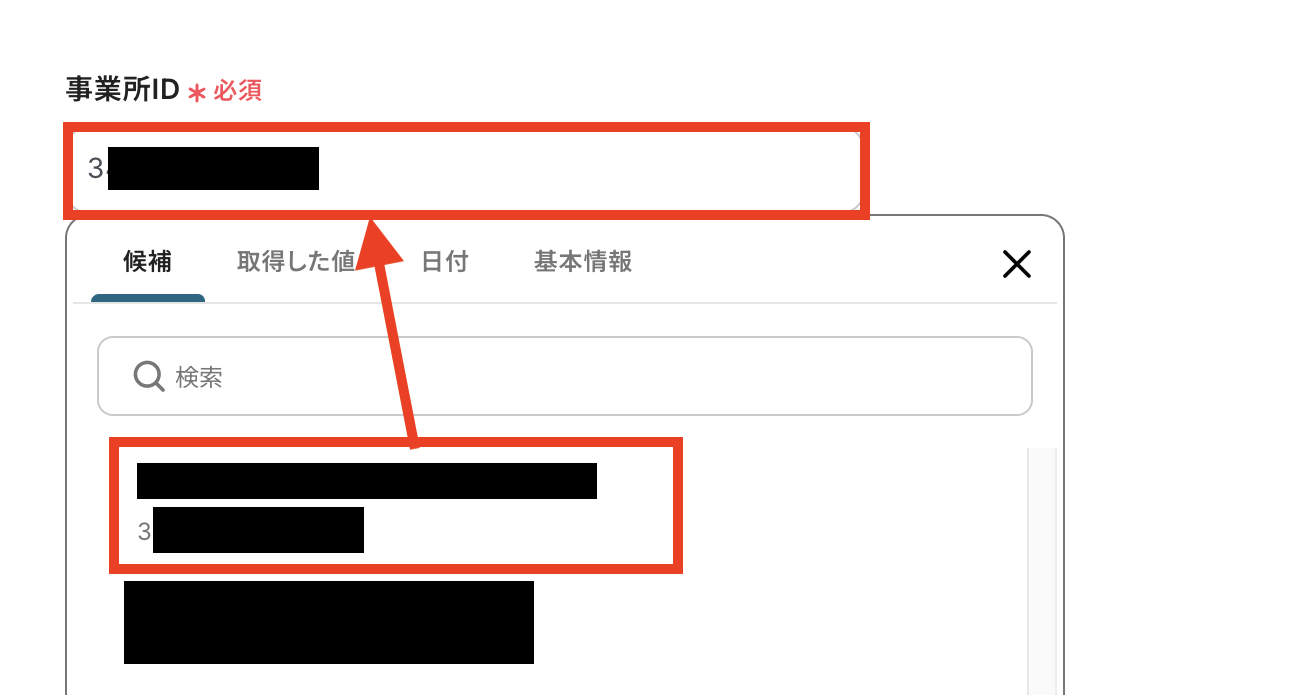 「事業所ID」は候補から選択できます。