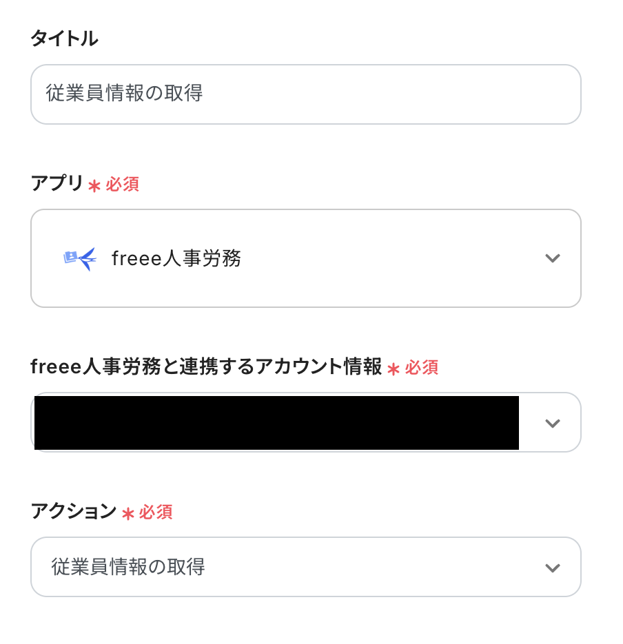 アクション:「従業員情報の取得」を選択