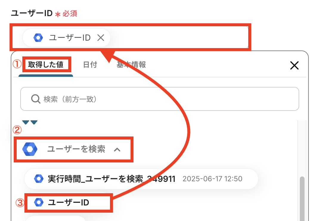 「ユーザーID」をステップ6で取得した値を入力します。