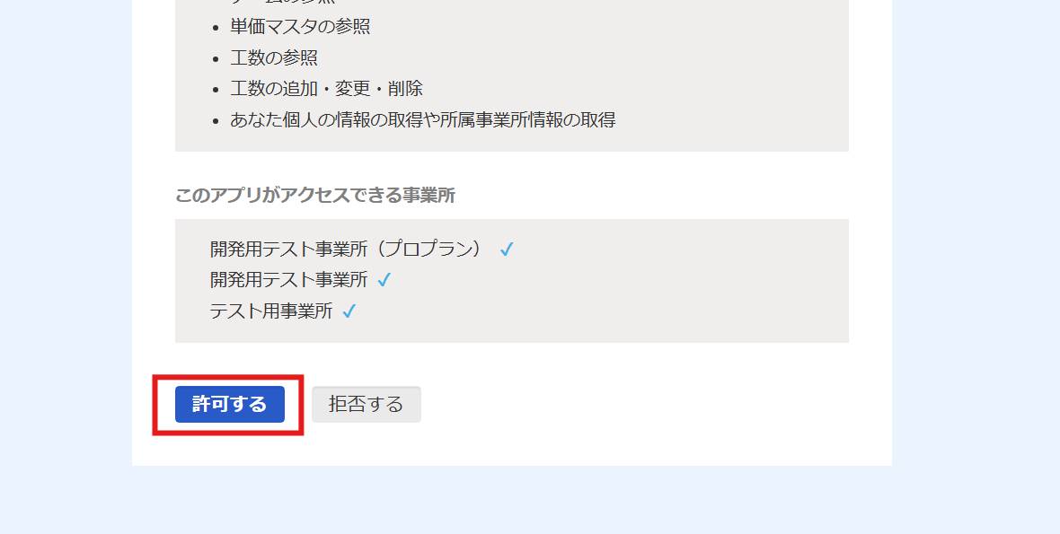 下へスクロールし、「許可をする」ボタンをクリックしましょう。