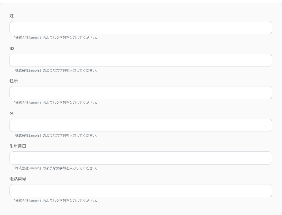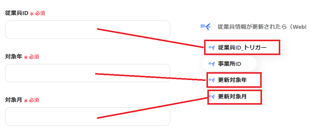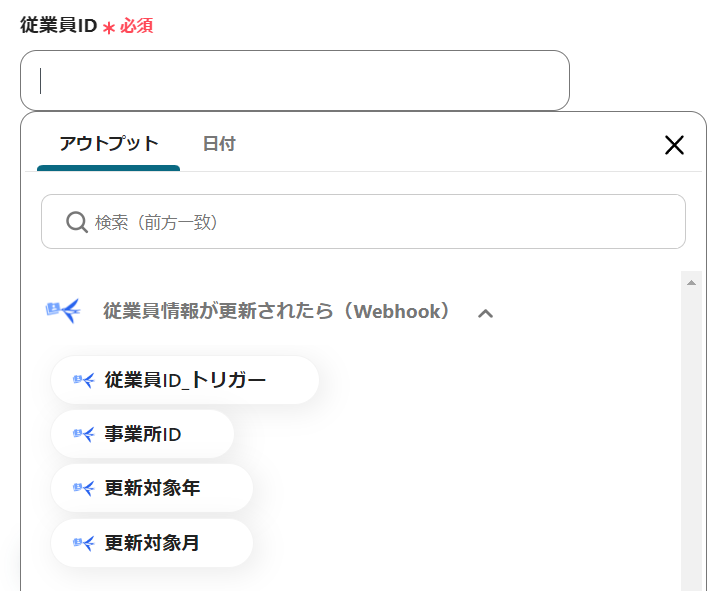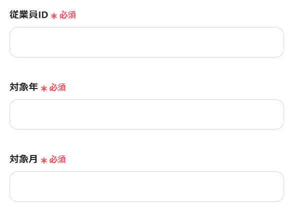 従業員IDなどの必須項目についても、ボックス内をクリックすることで入力可能です。