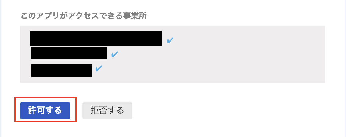 (3)アプリとの連携を許可する画面に移行するので、内容を確認して、画面最下部の[許可する]をクリックしてください。