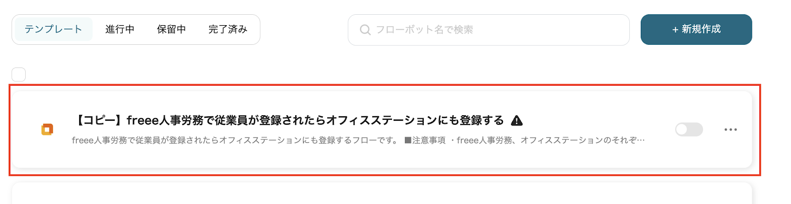 では、「freee人事労務で従業員が登録されたらオフィスステーションにも登録する」のテンプレートを使ったフローボットを作成していきましょう。