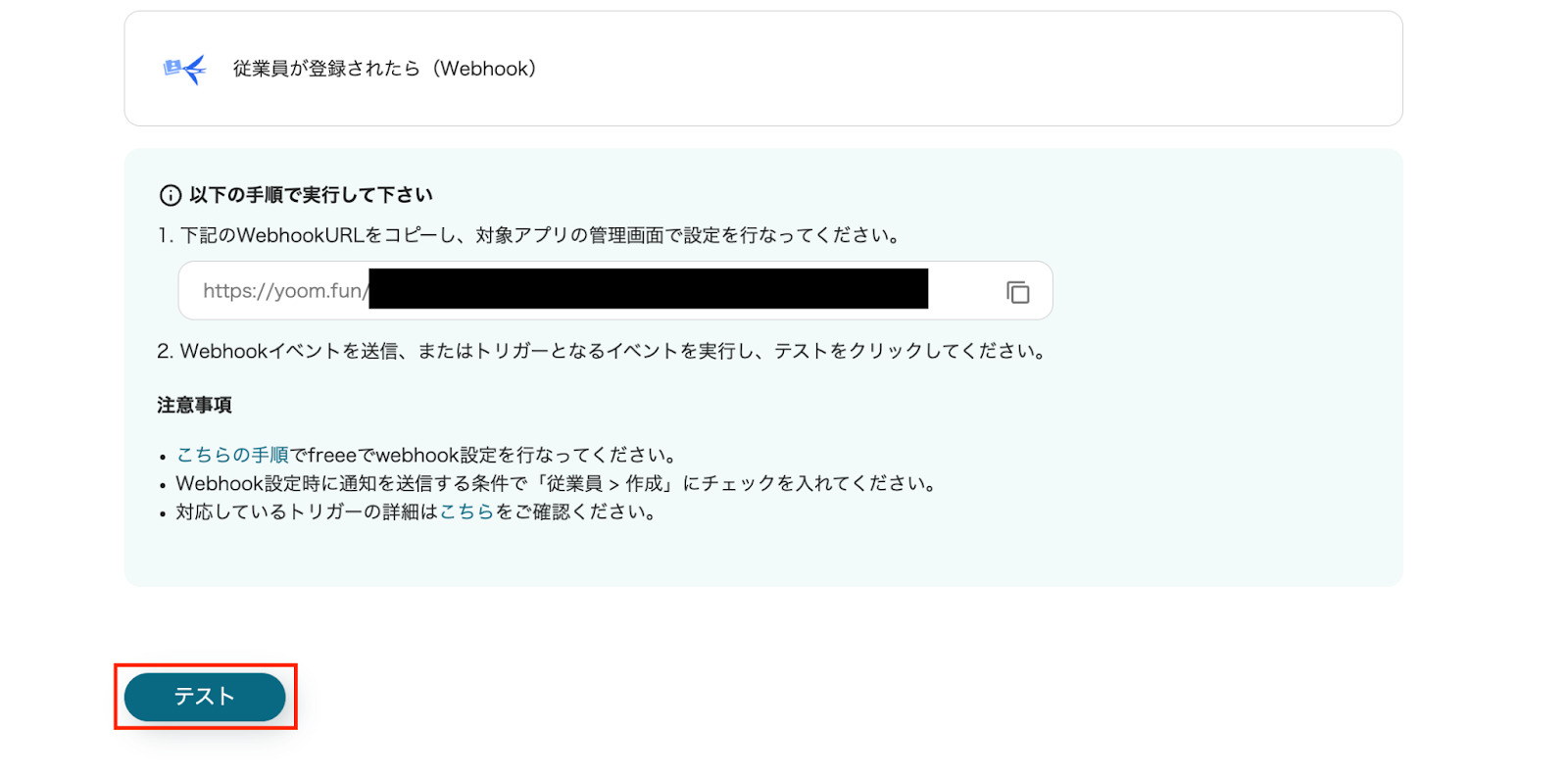 こちらの手順でfreeeでwebhook設定を行ってください。