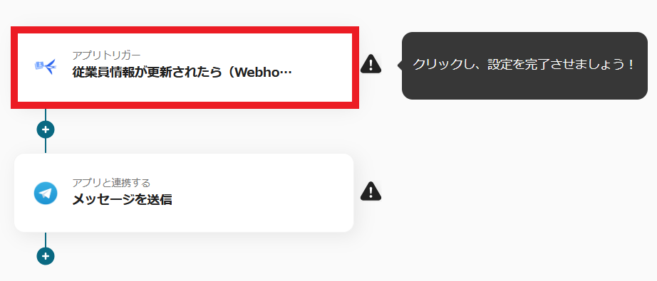 1.まず、一番上の「従業員情報が更新されたら(Webhook)」をクリックします。