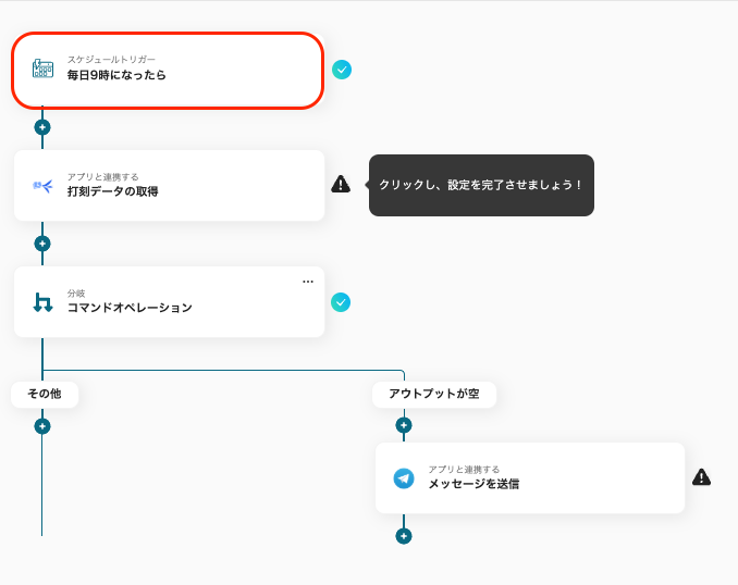 ・freee人事労務含むトリガーを設定し、Telegramでアクションを設定する