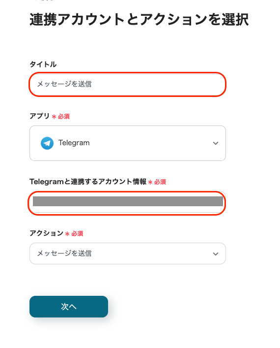 次はTelegramのアクションを設定していきます。