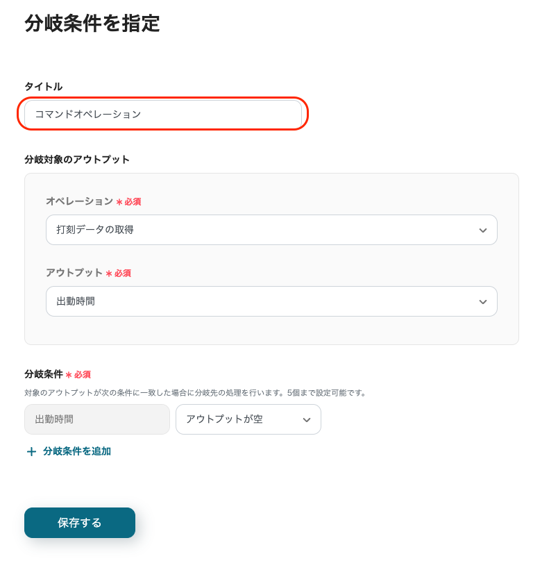 分岐条件の指定画面では「タイトル」を任意で編集できます。