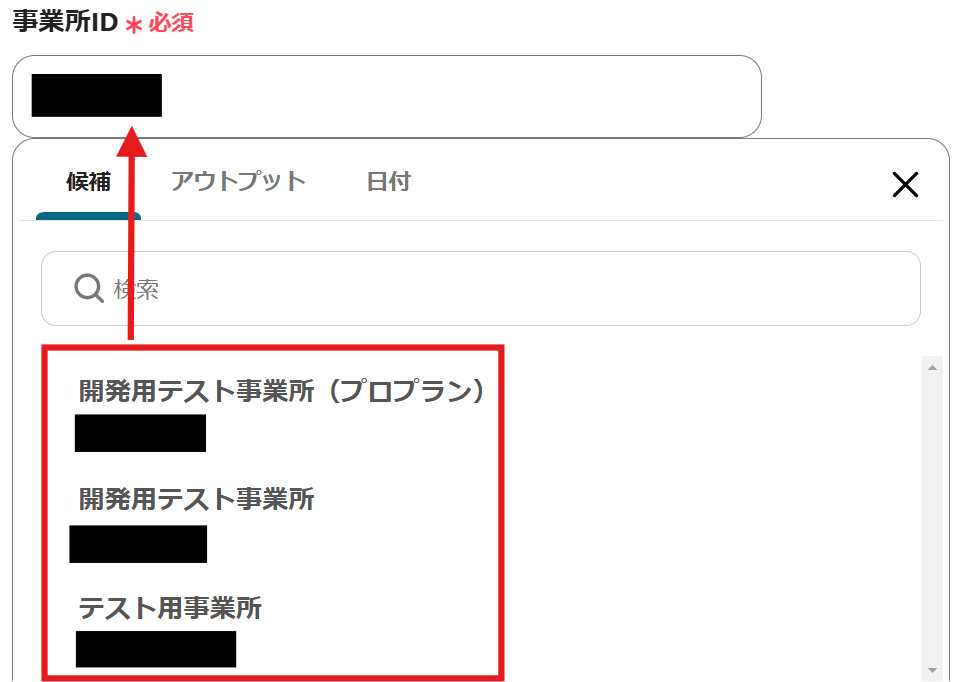 候補から該当するIDを選択してください。