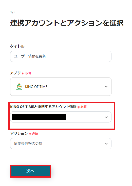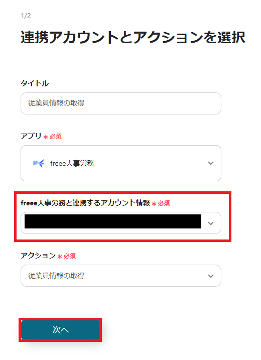 連携するアカウントとトリガーアクションを確認して、「次へ」をクリックしてください。
