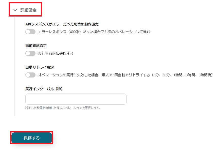 下にスクロールして、任意で詳細設定を行い保存してください。
