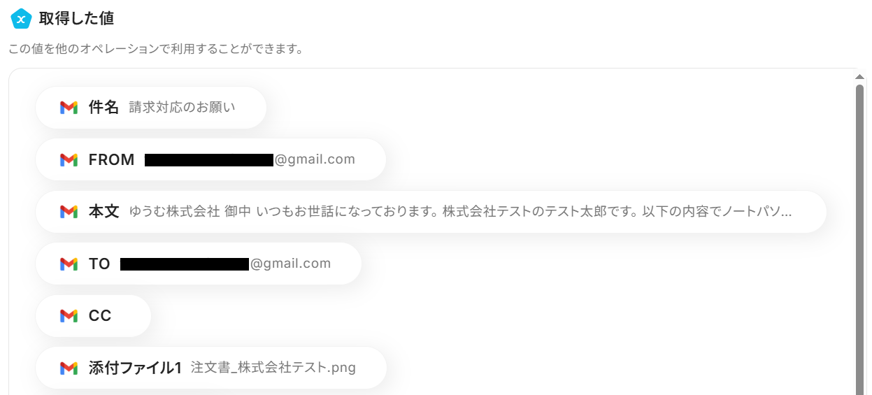 ・Googleフォームをトリガーとして使用した際の回答内容を取得する方法は下記をご参照ください。