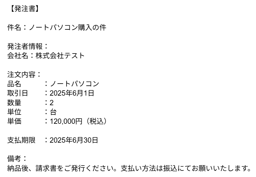 取引先からメールで届く発注書を都度確認し、手作業で請求書を作成する業務は、手間がかかる上に転記ミスなどのリスクも伴います。