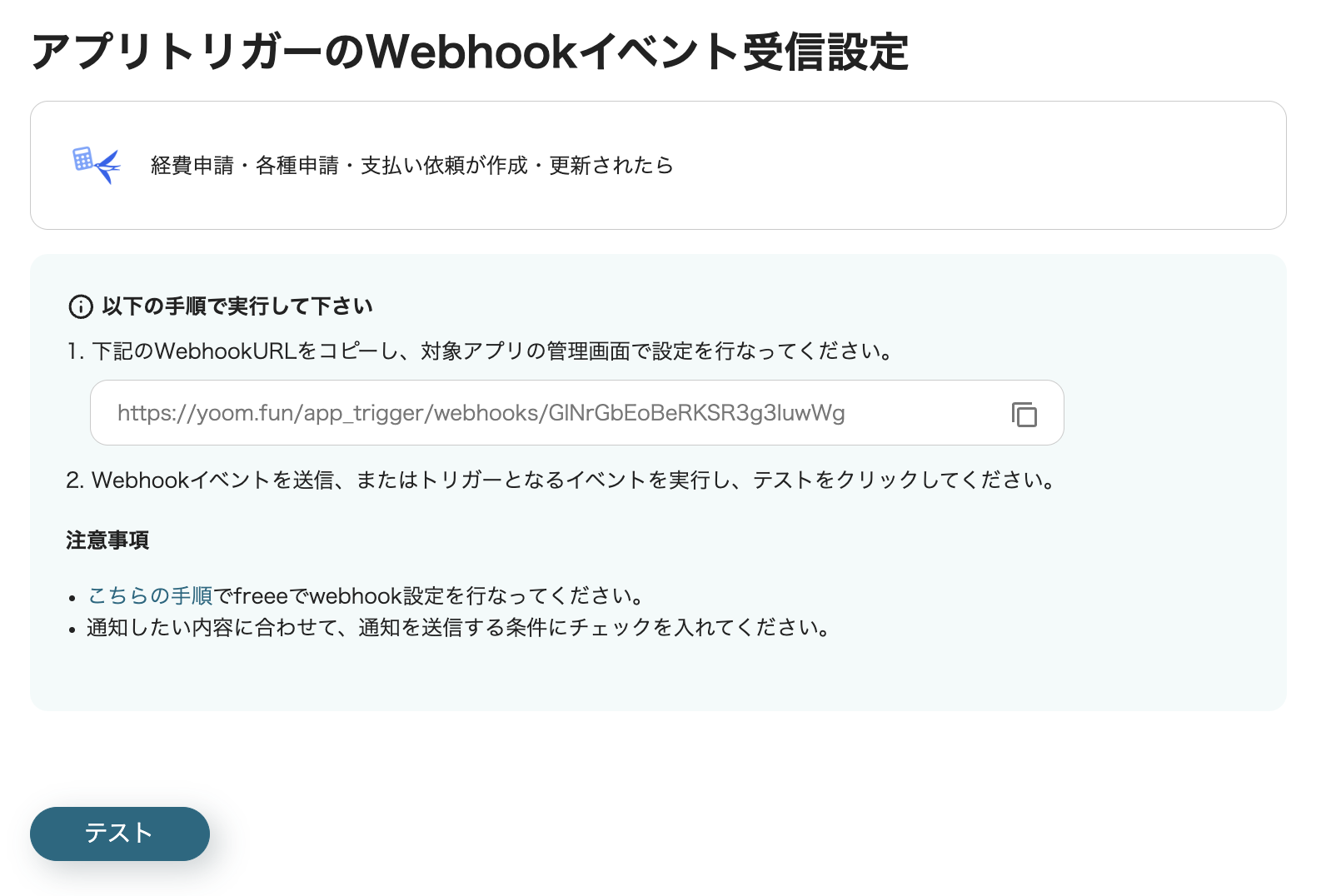 こちらの手順も参考に、freeeの管理画面からWebhook設定を行ってください。