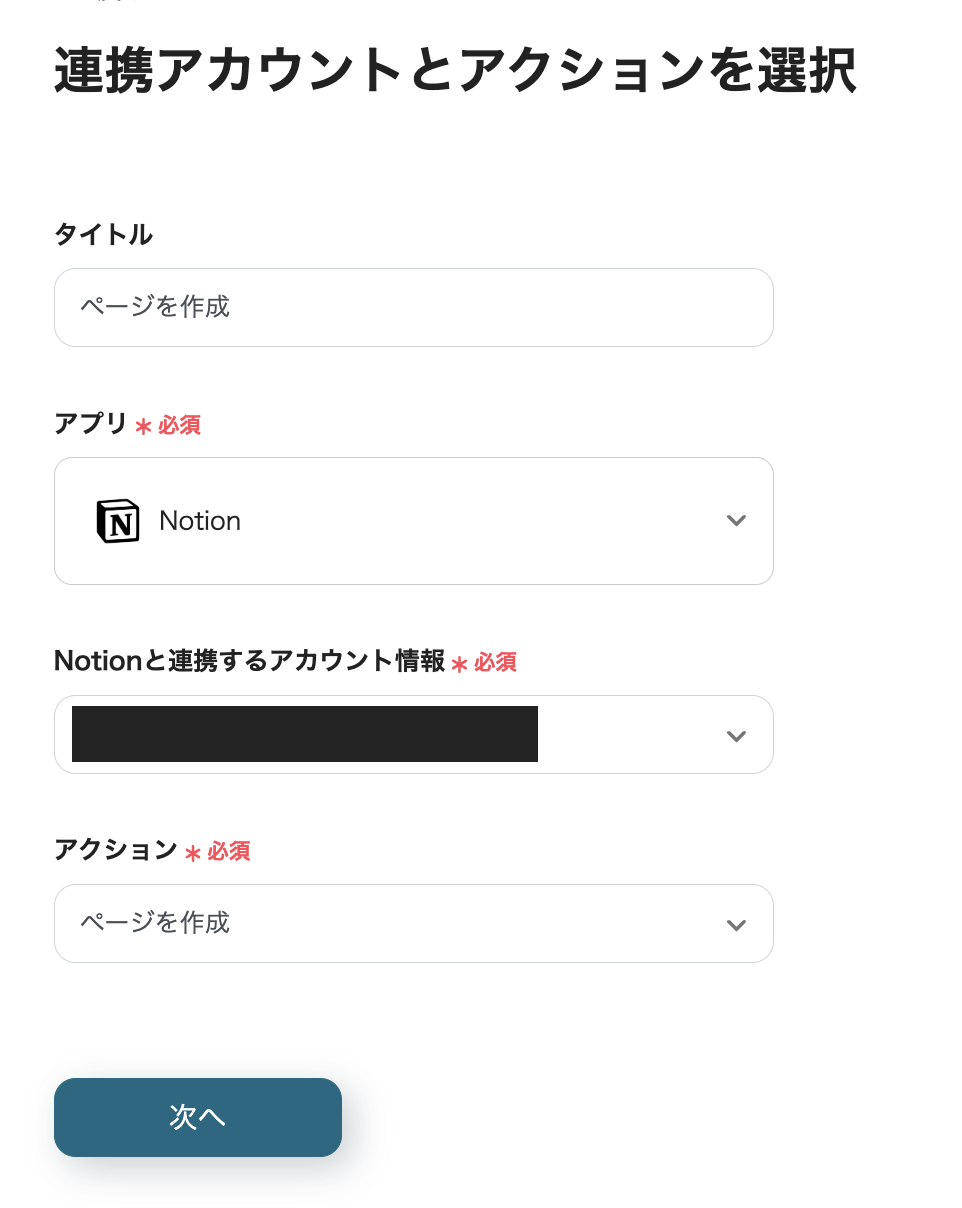 以下の画面で連携するアカウントを確認し、「次へ」をクリックしてください。