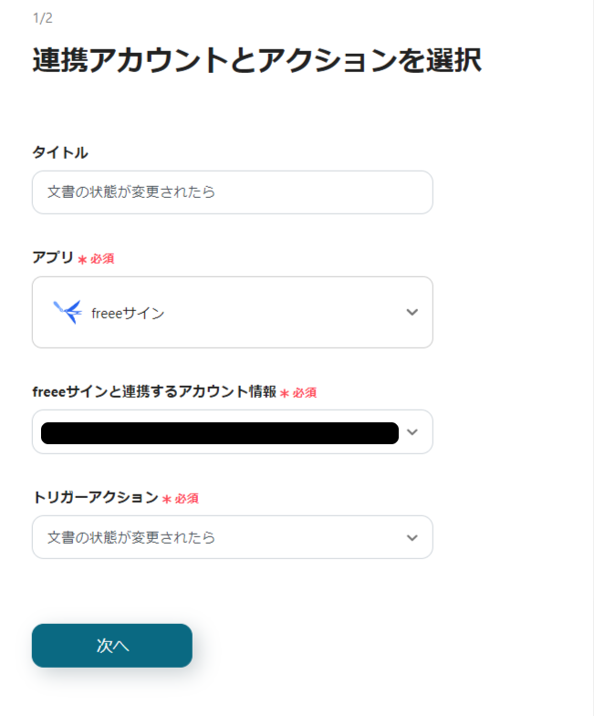 アカウント情報を確認したら、トリガーアクションは変更せずに次に進んでください。
