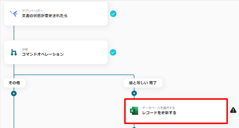 分岐対象のアウトプットが分岐条件と合致していれば、Microsoft Excelの情報更新のフローへと進みます。