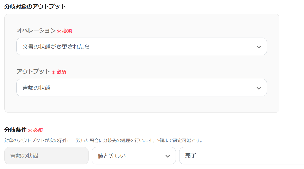 - トリガー:freeeサインの「文書の状態が変更されたら」を設定