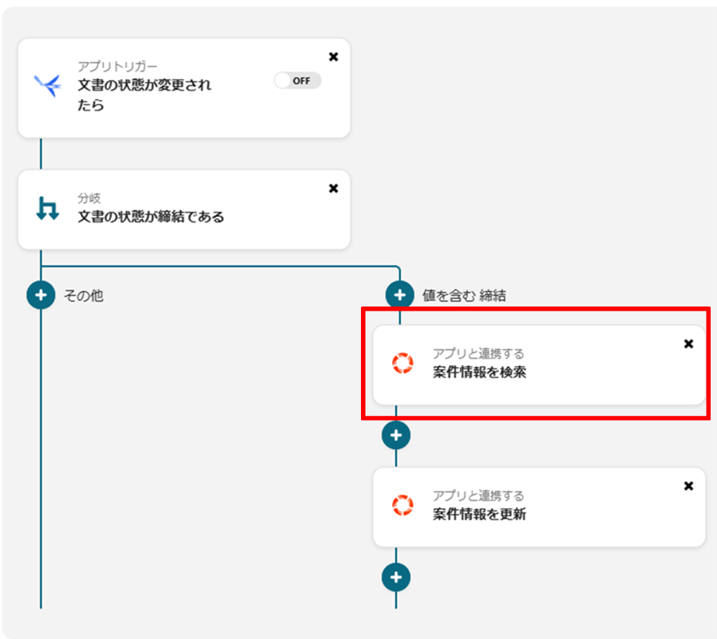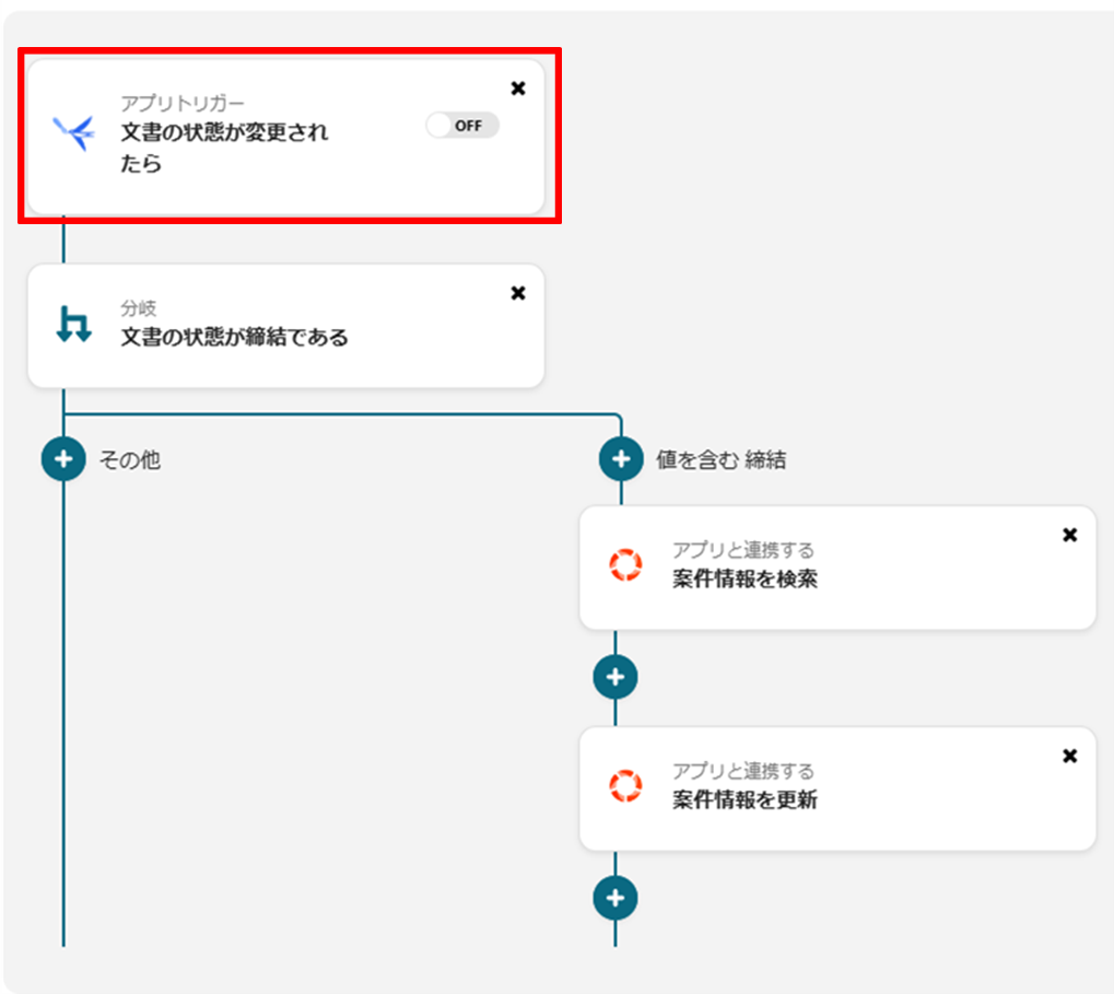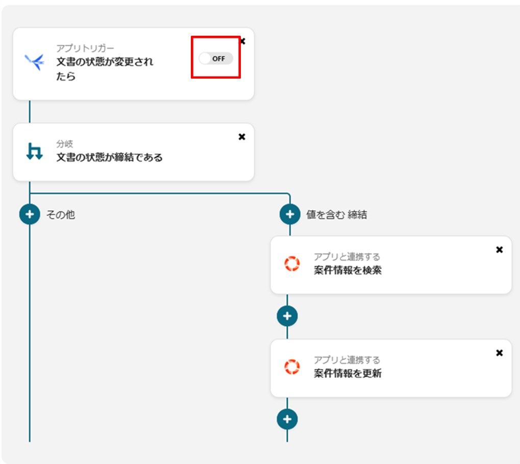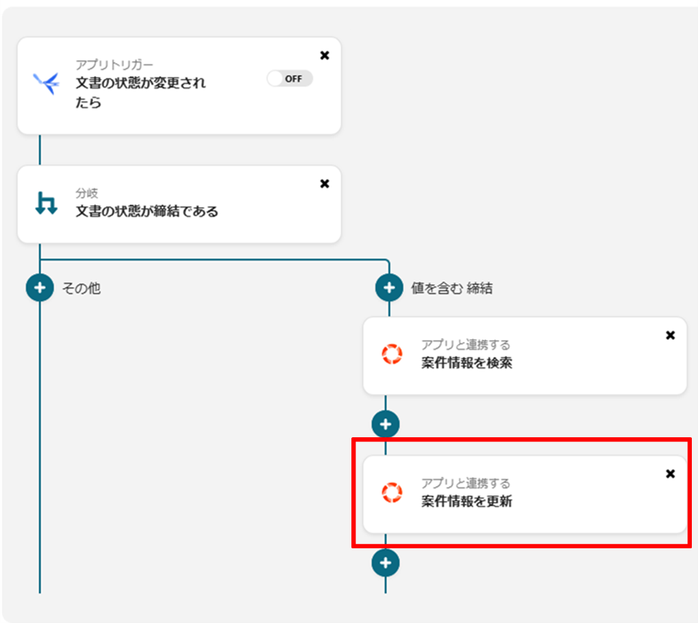 これで、「freeeサインとMazricaを連携してfreeeサインで締結が完了したら、Mazricaの案件ステータスを更新する」フローボットの完成です!