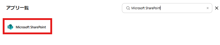 検索窓にMicrosoft SharePointと入力し、表示された候補をクリックします。