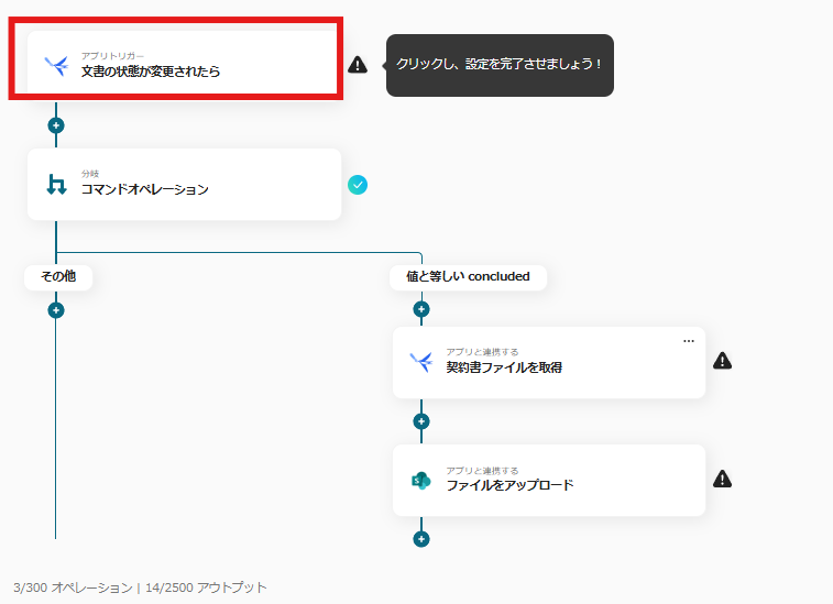 ・トリガーとなるfreeeサインのトリガー設定と、その後に続くMicrosoft SharePointのオペレーション設定