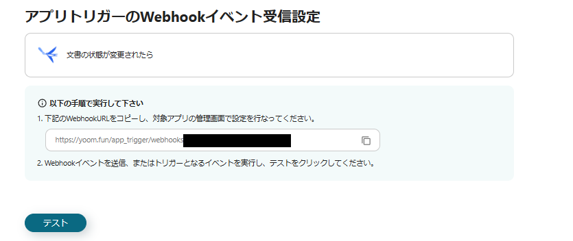 アプリトリガーのWebhookイベント受信設定の画面が表示されます。