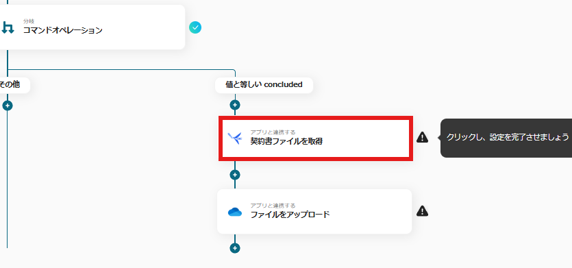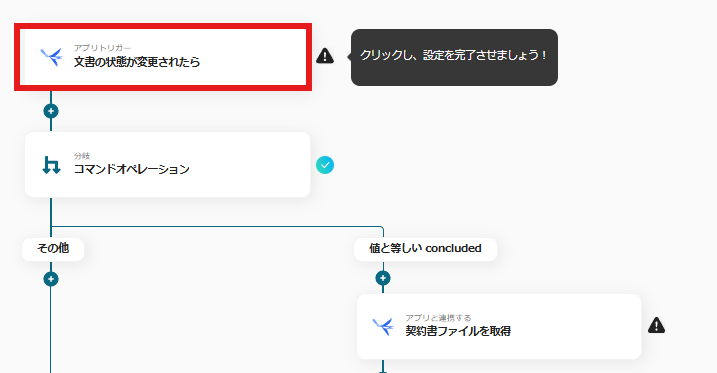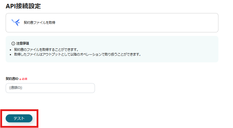 続いて契約書ファイルを取得するための設定を行うので、以下の画面の赤枠内をクリックしましょう。