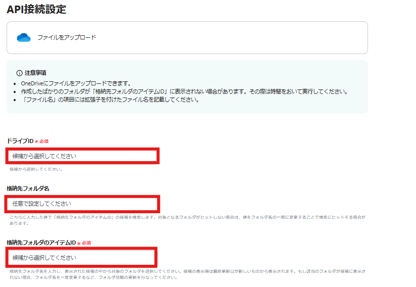 連携したOneDriveから取得した内容が表示されるので、内容を入力しましょう。