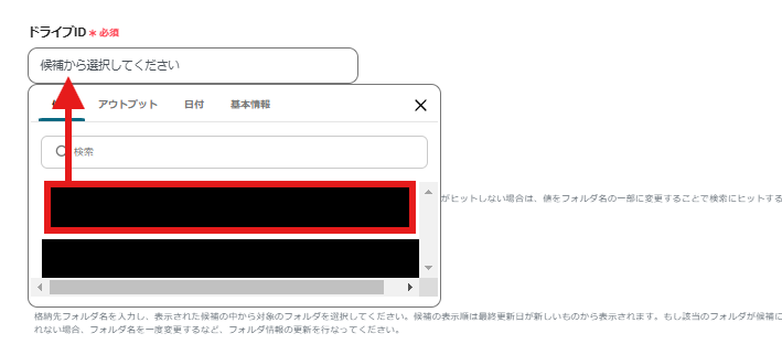 項目をクリックすると下に候補が表示されます。