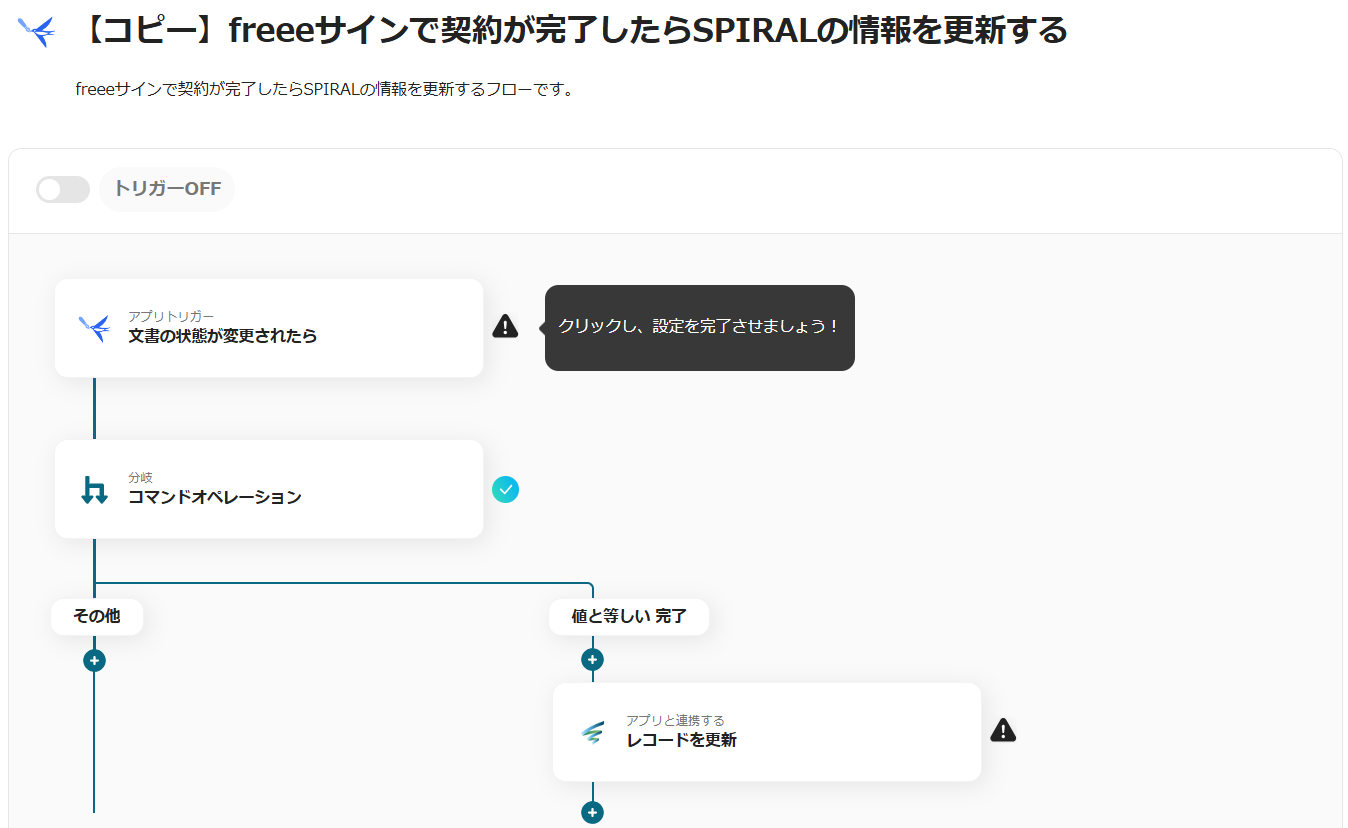 今回は「freeeサインで契約が完了したらSPIRALの情報を更新する」という以下のテンプレートの設定方法をご紹介します。