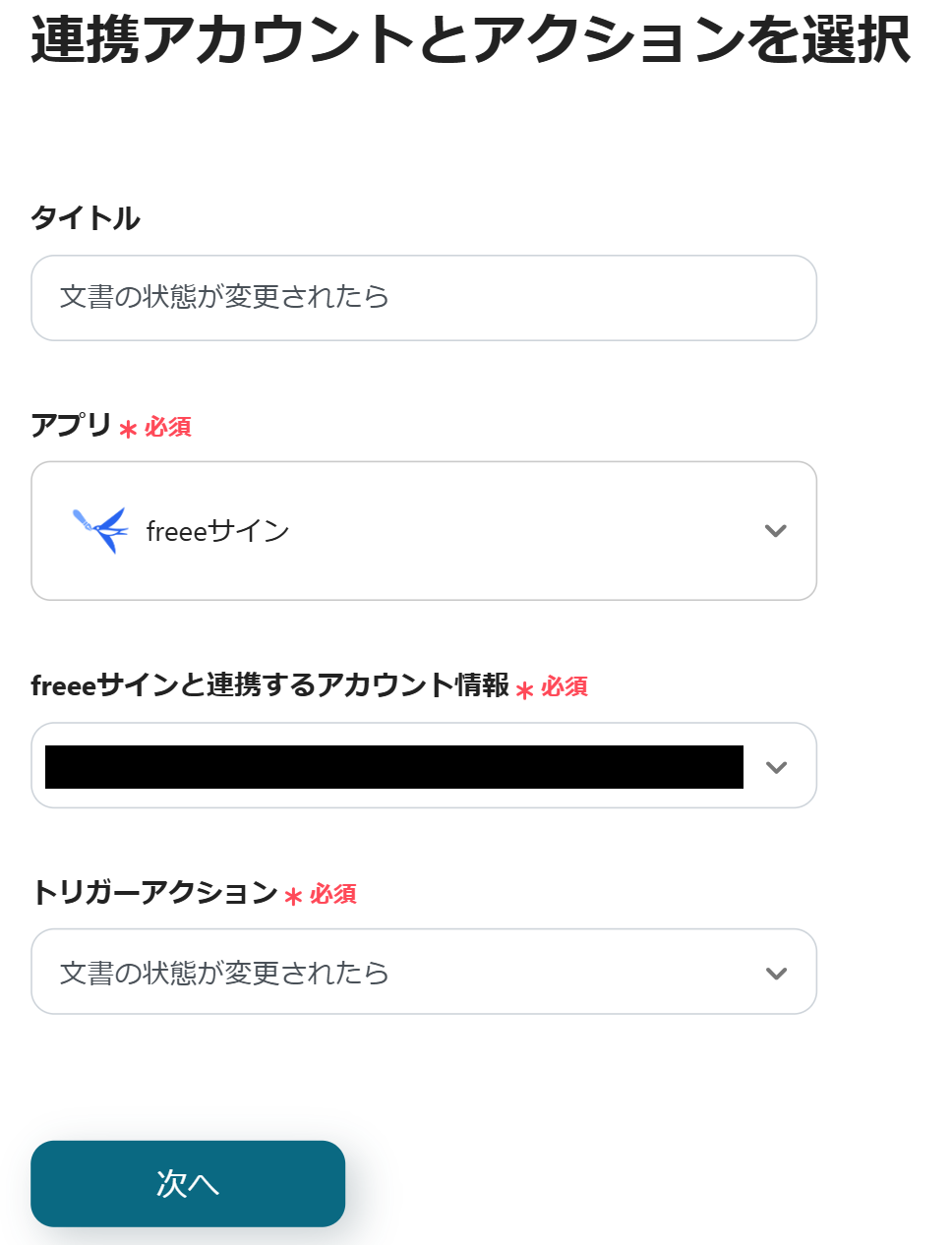 最初に、freeeサインの設定から行うため、「文書の状態が変更されたら」をクリックしましょう。