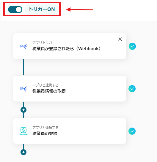 これで「freee人事労務で従業員が登録されたらSmartHRの従業員管理表にも追加する」の設定はすべて完了になります。