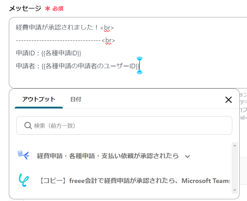 Microsoft Teamsに通知するメッセージの内容を決めていきましょう。