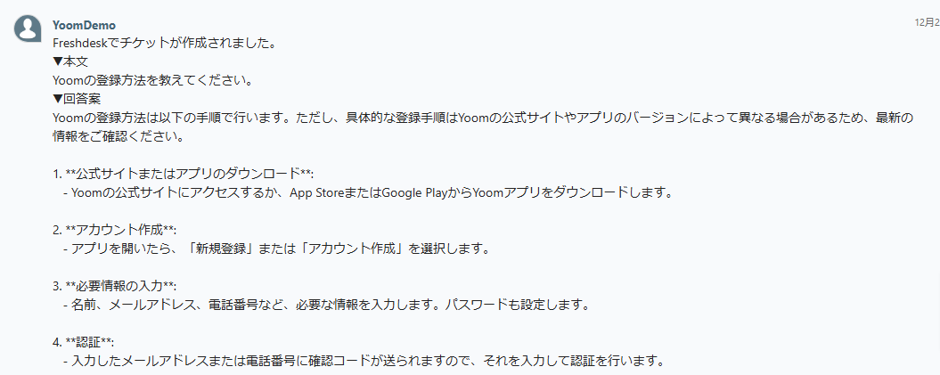 「Yoomの登録方法を知りたい」というチケット内容であることがわかりましたね。