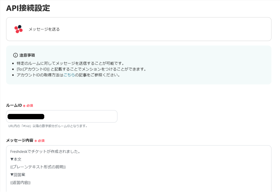 Freshdeskで作成されたチケットの情報が、自動的にChatworkに通知されることで、チームメンバー全員が対応状況を把握しやすくなります。この仕組みにより、対応の重複を防ぐとともに、情報共有が円滑化します。