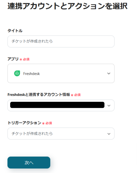 1ページ目では、マイアプリ連携をしたFreshdeskのアカウント情報が反映されています。