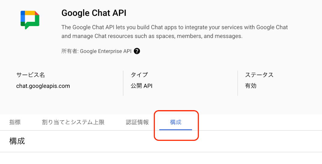 ライブラリでGoogle Chatを検索し「Google Chat api」を選択します。