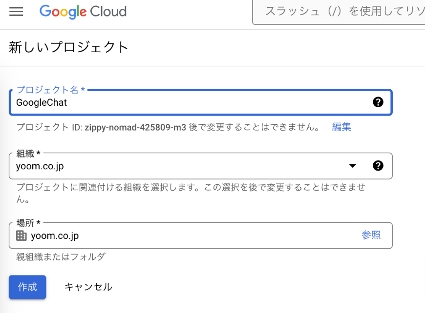 Google Cloud Platformにログインをして、新規プロジェクトを作成します。