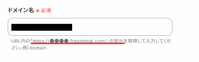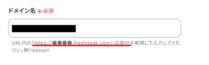 「ドメイン名」には、FreshdeskにログインしてURLから抽出した文字列を入力しましょう。