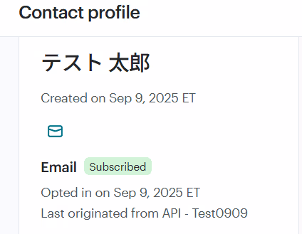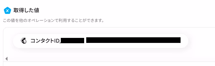 テストが成功すると、取得した値にMailchimpで作成されたコンタクトIDが表示されます。