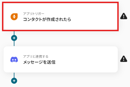 タイトルと連携するアカウント情報を任意で設定し、トリガーアクションはテンプレート通りに「コンタクトが作成されたら」のまま「次へ」をクリックして進んでください。