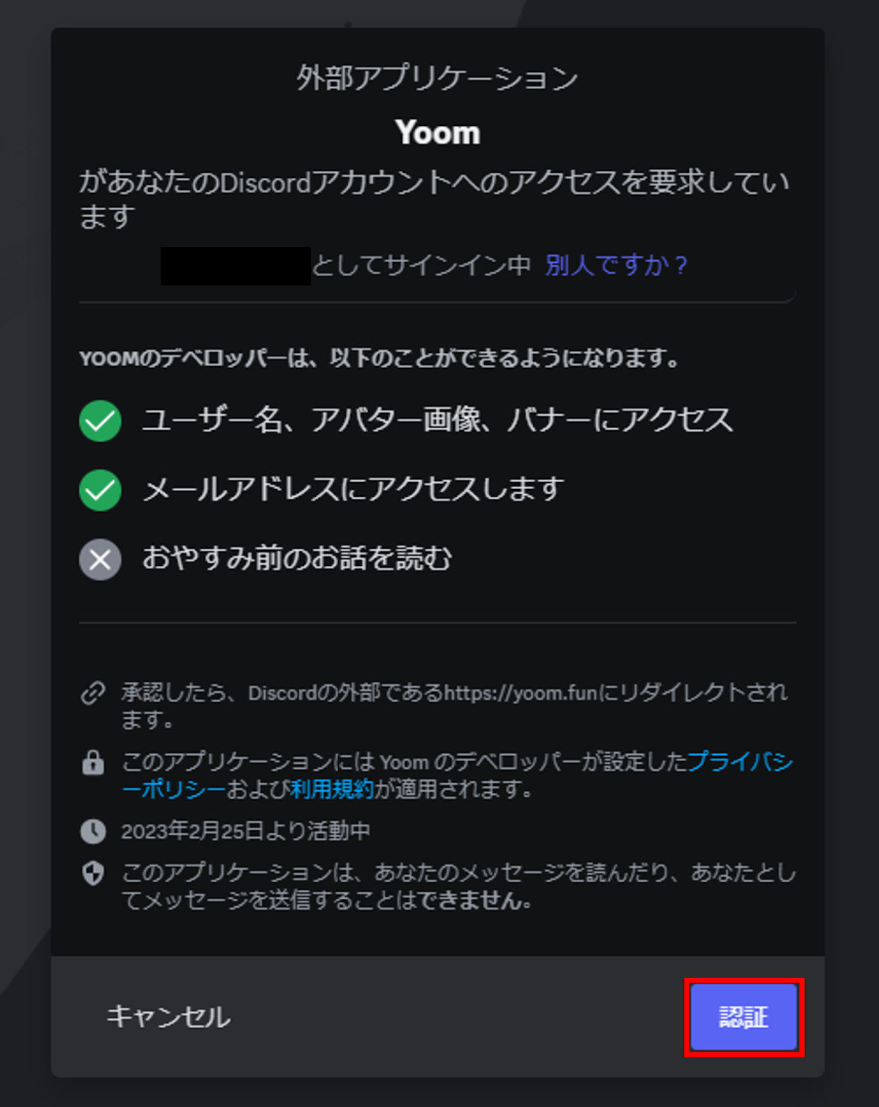(12)Discordと連携するアカウント情報が正しいかを確認