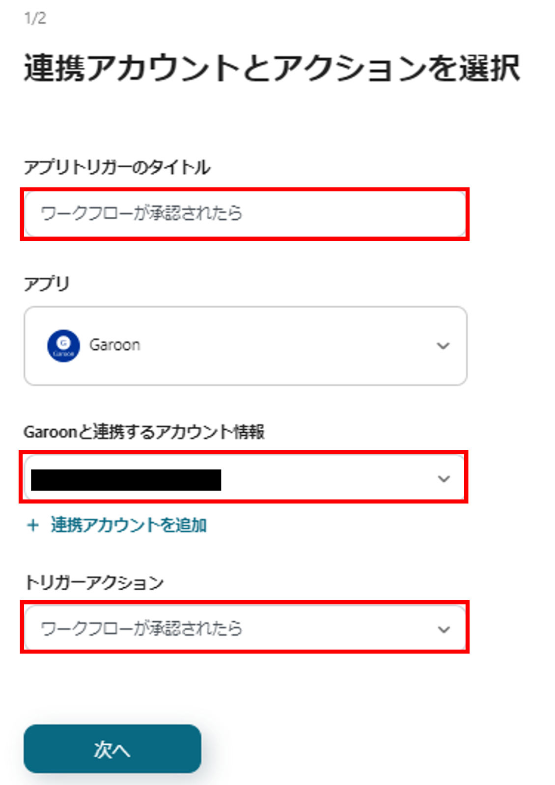 (4)トリガーアクションは「ワークフローが承認されたら」を選択