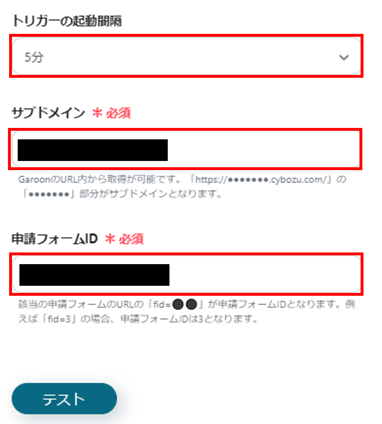 (8)申請フォームIDは、該当の申請フォームURL「fid=⚫️⚫️」の「⚫️⚫️」部分を入力