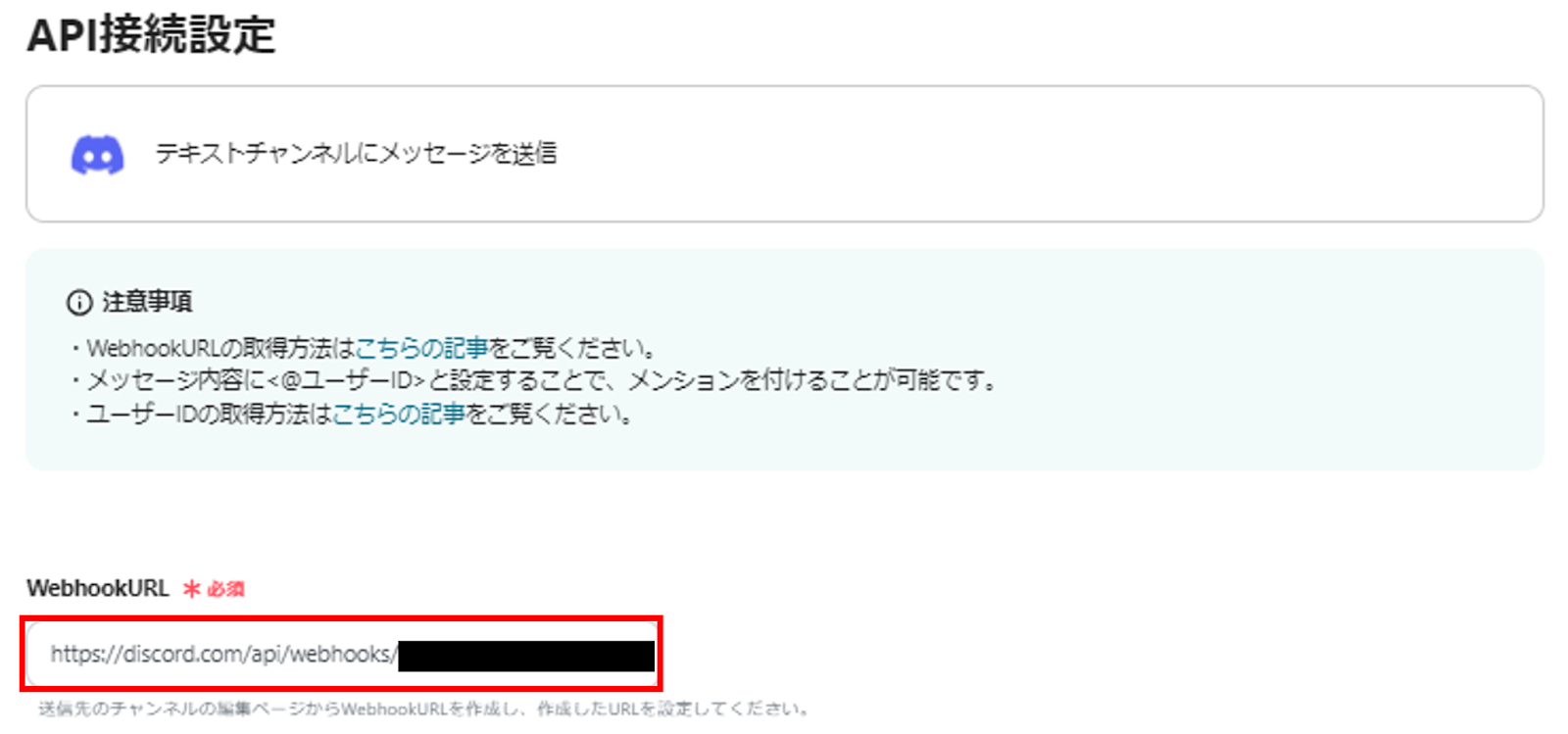 ➃Yoomの設定画面に戻り、WebhookURLに貼り付ける