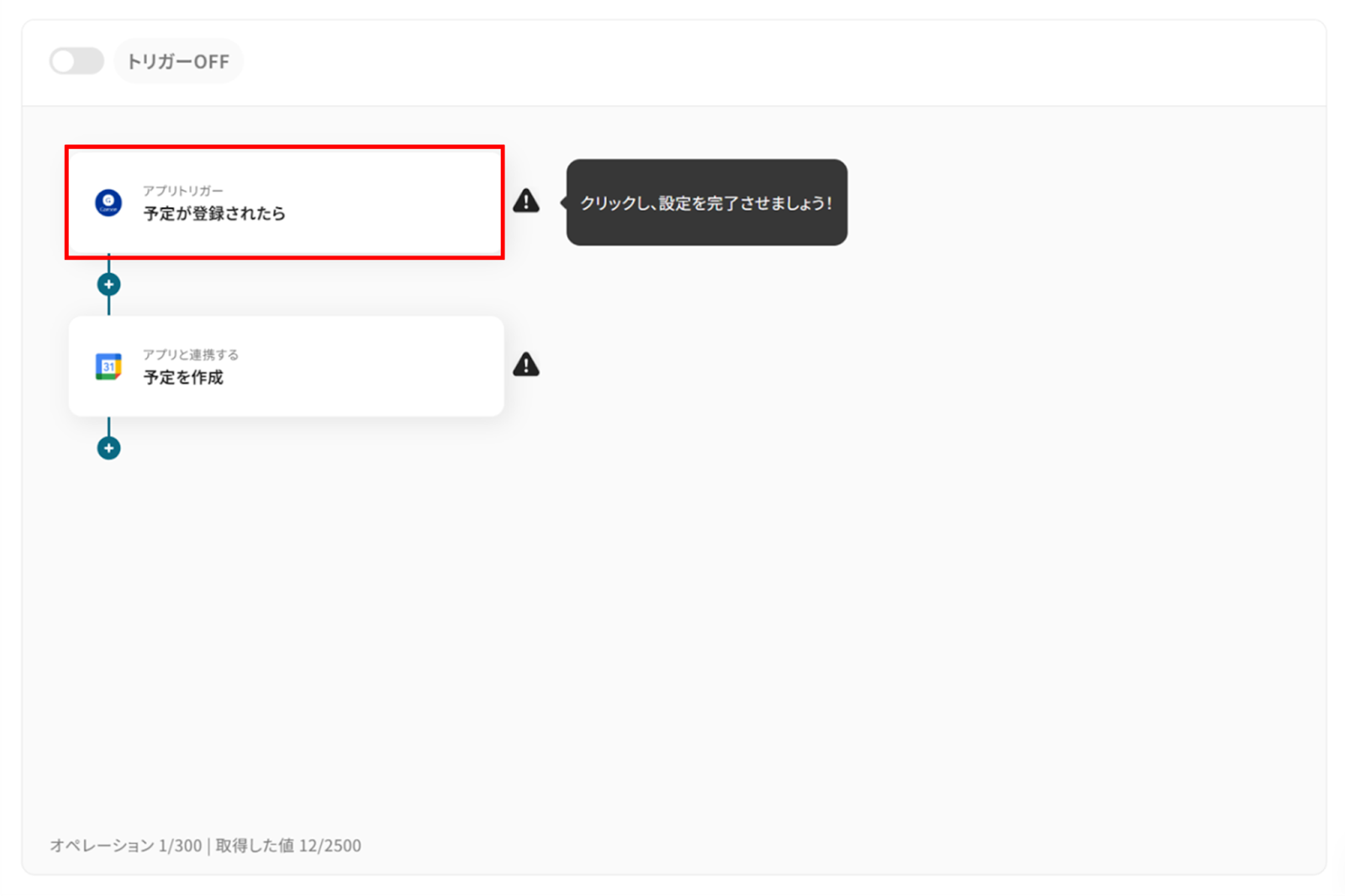 設定が完了すると以下のようなメニューが表示されるので、トリガーをONにします。